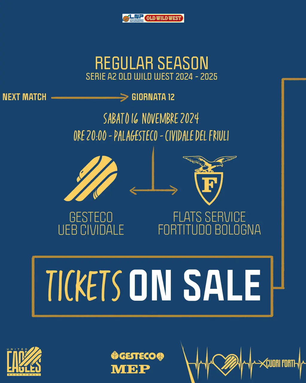 Si apre ufficialmente la prevendita per la dodicesima giornata di Serie A2 Old Wild West 2024/25, che si disputerà sabato 16 novembre al PalaGesteco (palla a due alle 20.00) contro la Flats Service Fortitudo Bologna.
