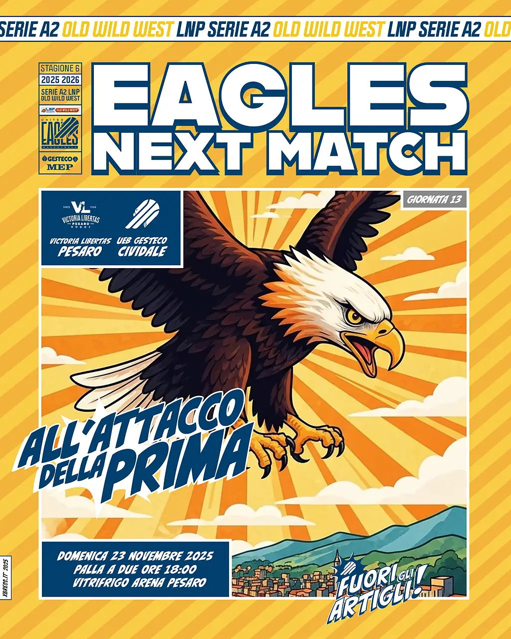 Dopo aver cambiato nettamente passo di marcia a seguito della sconfitta casalinga con Ruvo di Puglia, infilando 5 successi nelle successive 6 gare che l’hanno issata in zona play-off, la UEB Gesteco domenica 23 novembre, con palla a due alle ore 18.00, farà visita alla Vuelle Pesaro, battistrada del campionato, nella sua “tana” di via Gagarin. Sfida dunque molto affascinante quella che attende le Eagles, fatta apposta per misurare quanto sia forte la determinazione e la voglia di stupire dei ragazzi di Pillastrini che cercheranno di dare continuità di prestazioni e risultati contro una formazione che, partita in sordina nella pre-season e sconfitta tra le mura amiche alla prima di campionato contro la Libertas Livorno, ha poi ingranato un percorso fatto di soli successi, ad esclusione dei due punti persi nel finale un mese fa sul parquet di Rimini. L’abbandono dello sponsor Carpegna e complicati “lavori” in corso estivi per allestire un roster competitivo, tra partenze, arrivi ed infortuni assortiti, alla vigilia non avevano accreditato i pesaresi per un campionato di vertice, mentre coach Spiro Leka ha avuto modo di smentire i pronostici e dimostrare una volta di più la capacità di riuscire ad ottenere il meglio dai giocatori che gli vengono affidati, soprattutto nelle situazioni in apparenza più difficili. Un gruppo che costituito da un bel mix tra giovani talenti come gli esterni Alessandro Bertini e Stefano Trucchetti, quest’ultimo già compagno di squadra in azzurro di Leonardo Marangon e Francesco Ferrari, ed esperti veterani quali l’ex canturino Lorenzo Bucarelli e il lungo ex APU Quirino De Laurentiis; di tutto rispetto poi la coppia play-centro formata dall’americano Kay Felder, play con 9 punti e 3 assist a partita di media e dal 2.06 lituano Regimantas Miniotas, che fin qui mette assieme 15.6 punti, 7.7 rimbalzi e 2.2 assist per gara. Notevole l’apporto di qualità ed esperienza in cabina di regia di Matteo Tambone, ex Dinamo Sassari dalla lunga militanza nella massima serie, che “fattura” quasi 14 punti e 4 assist alla volta e importante nel sistema pesarese è anche la guardia Octavio Maretto, che garantisce 10 punti e 4 rimbalzi a partita. Completano il roster i giovani lunghi Elhadji Fainke e Nicolò Virginio, rispettivamente classe 2005 e 2003. I precedenti tra le due società in campionato sono 2 e risalgono alla scorsa stagione con bilancio in perfetta parità, una vittoria casalinga per parte, anche se per Cividale il peso specifico del successo in via Perusini fu certamente notevole, visto che la vittoria per i ducali significò staccare il pass per le final four di Coppa Italia, grazie ad un Lucio Redivo a tratti immarcabile e autore di 38 punti per una delle sue migliori prestazioni offensive da quando indossa la maglia gialloblù. Valore solo statistico ricopre anche l’amichevole estiva di questo precampionato, quando una Vuelle Pesaro ancora incompleta fu sconfitta da una Cividale alla sua prima uscita stagionale.