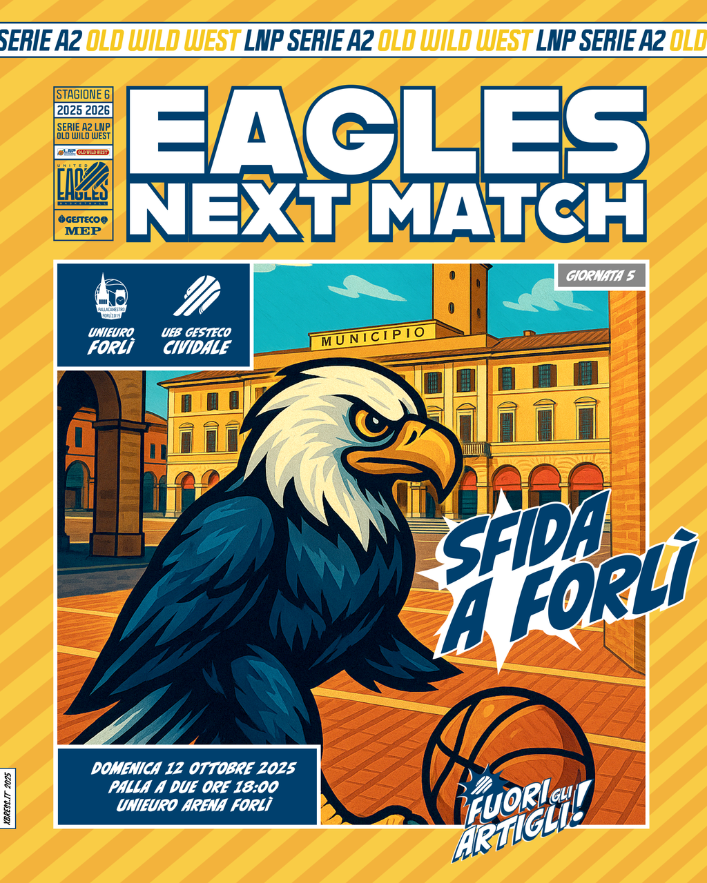 Dopo lo stop imposto ai ragazzi di Pillastrini dalla lanciatissima Sebastiani Rieti nel primo turno infrasettimanale in via Perusini, un’altra sfida “ad alto tasso di difficoltà” attende la Gesteco all’Unieuro Arena di Forlì per la quinta partita del girone di andata; l’avversario di turno infatti, è anch’esso reduce da due rovesci maturati lontano da casa e si trova con la necessità di fare due punti per “tranquillizzare” un ambiente esigente e che si aspettava ben altro avvio di stagione, in ragione del roster esperto e competitivo allestito in estate. Il coach Antimo Martino può contare su giocatori esperti del calibro degli ex Apu Raphael Gaspardo, Simone Pepe e dell’ex fortitudino Pietro Aradori, di una coppia USA di esterni temibile, come quella composta da Frank Allen e Demonte Harper, la regia di Riccardo Tavernelli ed i centimetri di Stefano Masciadri, Angelo Del Chiaro e Giulio Gazzotti sotto i tabelloni. La squadra romagnola di può definire uno degli avversari storici di Cividale, da quando i gialloblù frequentano la serie A2, essendosi i due club già incrociati ben 12 volte dal novembre 2022 tra campionato, play-off e Supercoppa, senza contare le gare estive del Memorial Bortoluzzi di Lignano Sabbiadoro, per un computo negli scontri diretti che vede Cividale avanti per 7 successi a 5. Ricordi dolci e amari per la UEB Gesteco che ha ottenuto la sua prima vittoria in trasferta della sua storia in Serie A2 proprio all’Unieuro Arena nel novembre 2022 e superato i romagnoli nella semifinale della vittoriosa Supercoppa dello scorso settembre a Ravenna, ma che ha anche dovuto incassare l’eliminazione al primo turno di play-off della scorsa stagione facendosi rimontare dagli uomini di Martino, dopo che le Eagles si erano portate avanti 2-0 nella serie. Domenica però non ci sarà bisogno di ricorrere ai ricordi per trovare ulteriori motivazioni per conquistare i due punti: entrambe le squadre hanno già nel loro presente buoni motivi per portarsi a casa l’intera posta.