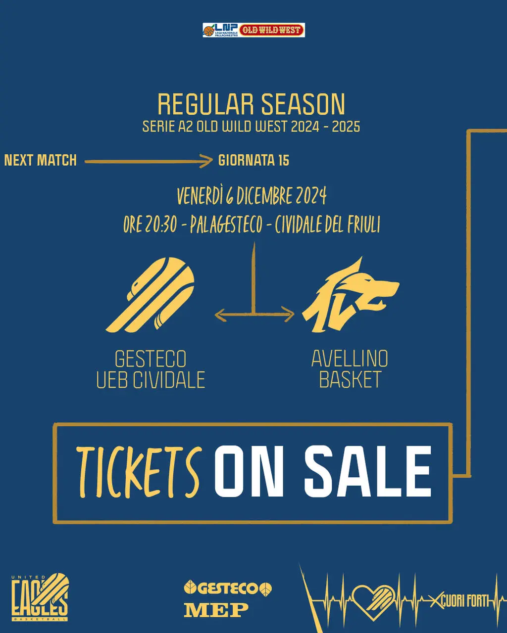 Si apre ufficialmente la prevendita per la quindicesima giornata di Serie A2 Old Wild West 2024/2025, che si disputerà venerdì 6 dicembre al PalaGesteco contro Avellino Basket, con palla a due alle 20.30.