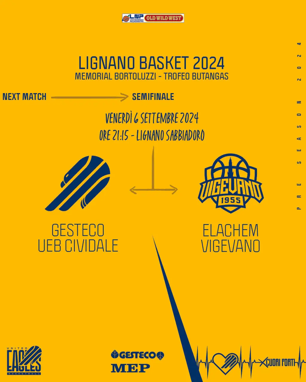 Venerdì alle 19.00 la prima semifinale, quella tra Forlì e Pesaro; a seguire (alle 21.15) la sfida tra la UEB Gesteco Cividale e Vigevano. Sabato sarà a volta delle finali, con il match per il 3° posto alle 17.00 e la finalissima alle 19.15. Coach Stefano Pillastrini presenta così l'appuntamento lignanese: “È un torneo di avvicinamento al campionato e, come sempre in queste situazioni, dobbiamo valutare i nostri progressi. La condizione fisica sta pian piano migliorando anche se siamo molto stanchi dai carichi di lavoro; da un punto di vista tecnico, stiamo cercando di aumentare l'intensità del nostro gioco: di fare cose simili a quelle che facevamo l'anno scorso, però a un ritmo e un'intensità più alta. Come sempre, non dobbiamo dare importanza ai risultati, ma a come approcciamo, ai miglioramenti che facciamo: proveremo anche delle rotazioni particolari perché voglio vedere in campo i nuovi e voglio vedere anche come i vecchi riescono ad adattarsi ai nuovi arrivi, quindi ci sono tanti motivi per dire che questo torneo è molto importante. So già che ci sarà una buona affluenza di tifosi, per noi questo è sempre un grande sostegno: i tifosi ci conoscono, sanno che vorremmo arrivare pronti per l'inizio del campionato e che, adesso, queste sono tutte tappe d'avvicinamento che prendiamo molto seriamente”.