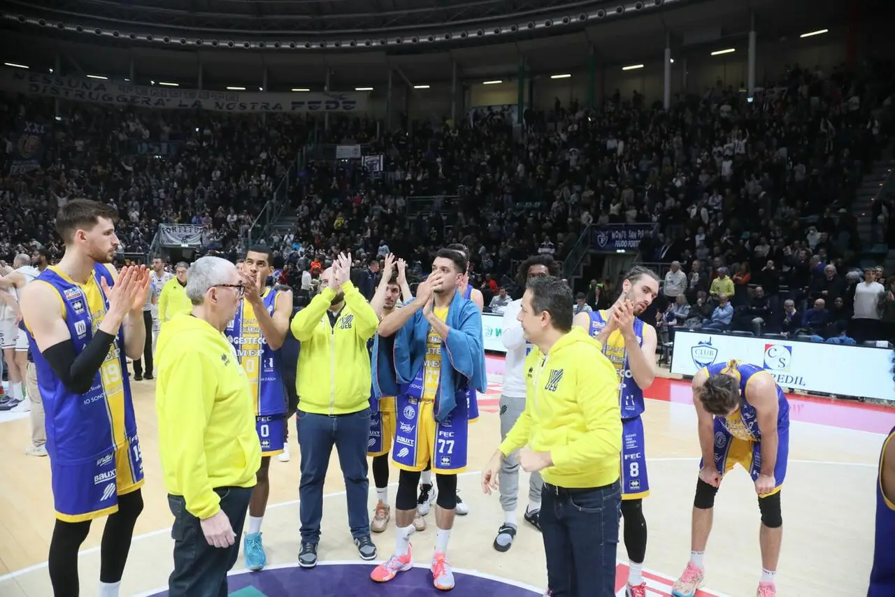 Per i ragazzi di Pillastrini bissare il successo della scorsa stagione con il supporto di 300 tifosi arrivati da Cividale era più complicato di un sesto grado esposto, al cospetto di un avversario “ferito” dalla sconfitta patita sette giorni fa a Cento e alla ricerca dei punti necessari per blindare il primato e la qualificazione alla coppa Italia, potendo contare anche sul rientro di Pietro Aradori, mattatore all’andata in via Perusini con un bottino personale di 30 punti.