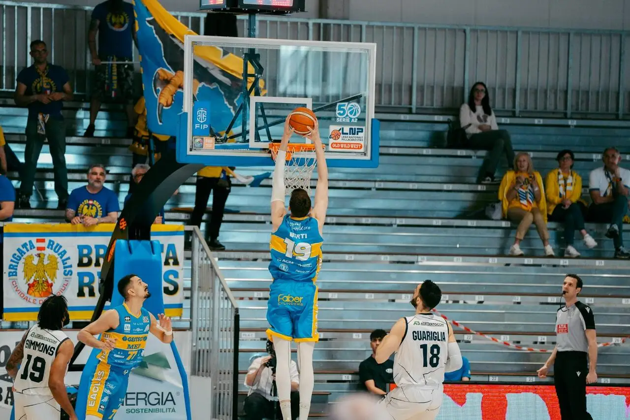 La UEB Gesteco Cividale ottiene una vittoria che vale il quinto posto finale in classifica e per la prima volta nella sua giovane storia Cividale affronterà il primo turno dei playoff con il fattore campo a suo favore: grazie alla vittoria di questa sera sul campo di Orzinuovi (BS) per 65-75 e in virtù della vittoria di Rieti a Piacenza (73-88) e di Cento in terra emiliana contro Forlì (86-67), saranno proprio questi ultimi gli avversari delle Eagles nei quarti di finale. Non c'è modo migliore per festeggiare la duecentesima panchina di coach Stefano Pillastrini con la Gesteco e ora il coach nativo di Ferrara avrà due settimane per preparare al meglio la post-season, in attesa dei play-in per conoscere le ultime due partecipanti ai play-off. La trentottesima giornata del campionato di Serie A2 Old Wild West interessava poco la squadra targata Gruppo Mascio: già da 15 giorni i lombardi erano certi del matematico quattordicesimo posto in classifica, invece a Rota e compagni serviva un successo per ottenere la migliore posizione possibile in classifica.