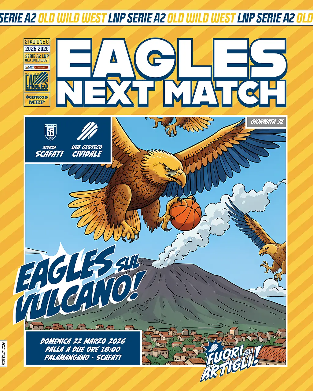 Domenica 22 marzo, con palla a due alle ore 18:00, la UEB Gesteco Cividale sarà di scena al PalaMangano per la 31ª giornata di Serie A2 contro la Givova Scafati, in un confronto dal peso specifico altissimo in chiave playoff. Il match mette infatti in palio due punti pesantissimi per il piazzamento finale: i campani occupano attualmente il quinto posto in graduatoria a quota 36 punti, frutto di 18 vittorie e 10 sconfitte mentre i gialloblù ducali inseguono a 34 e sono reduci dal brutto stop casalingo contro Forlì. Un successo consentirebbe alla squadra di coach Pillastrini di agganciare Scafati in classifica e di conquistare anche il secondo scontro diretto stagionale, dopo il 76-70 dell’andata al PalaGesteco dello scorso 29 ottobre.