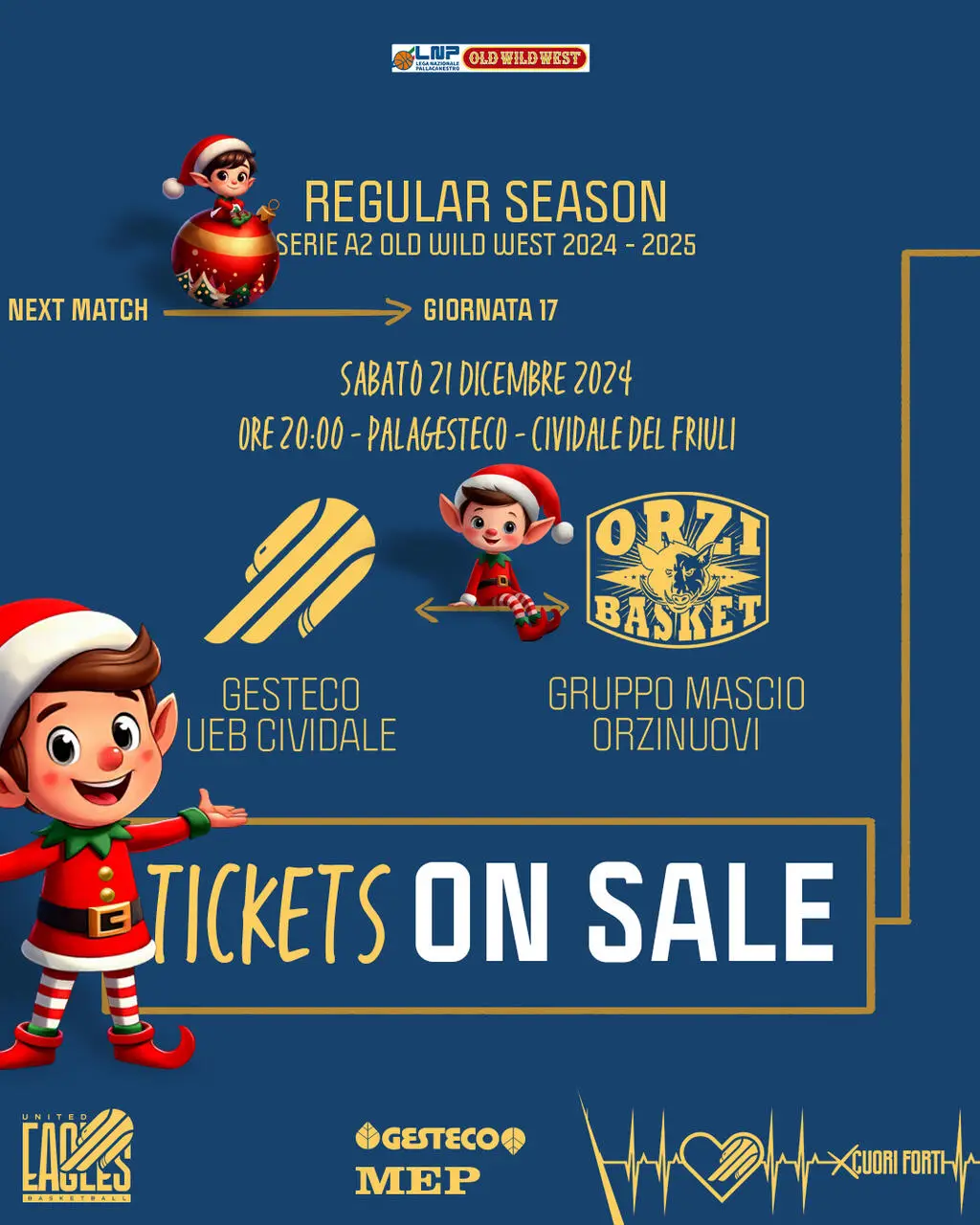 Si apre ufficialmente la prevendita per la diciassettesima giornata di Serie A2 Old Wild West 2024/25, che si disputerà sabato 21 dicembre al PalaGesteco contro Gruppo Mascio Orzinuovi, con palla a due alle 20.00.