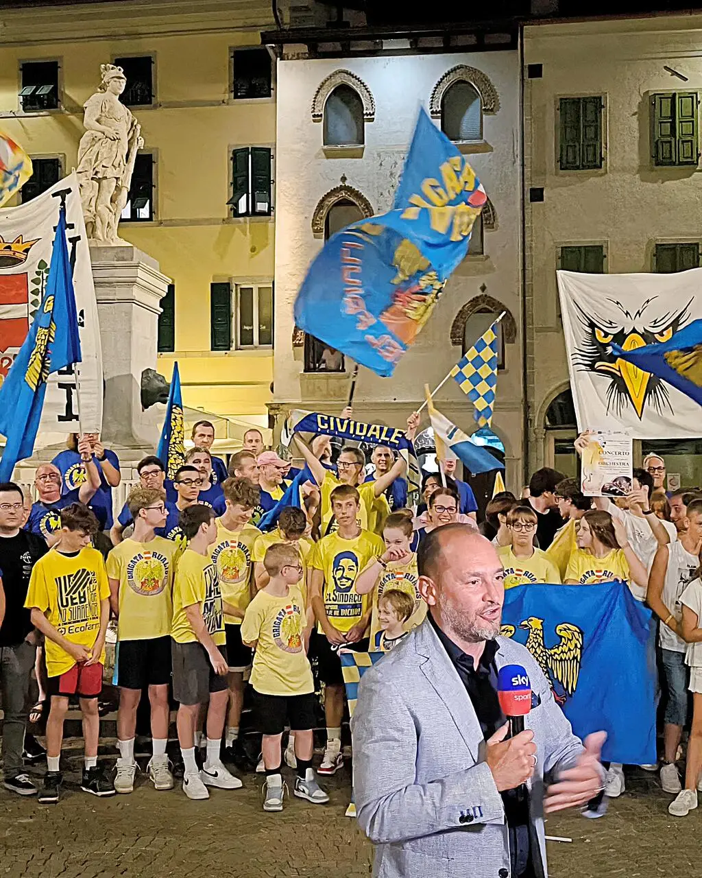 Ieri è stata la volta di Cividale e della Ueb Gesteco, che ha trovato spazio nel corso della puntata: è intervenuto, infatti, il Presidente Davide Micalich spiegando la natura delle Aquile: "Quando abbiamo deciso di costruire questo club, abbiamco creato questo feeling in maniera spontanea e abbiamo deciso di tifare sempre a favore, di non fischiare mai gli arbitri, di non insultare mai gli avversari, ma di spingere sempre i nostri ragazzi oltre i propri limiti". Anche la Marea Gialla ha risposto presente: molti i tifosi gialloblu presenti in piazza per animare la città ducale e mostrare l'anima di questa società, sorprendendo lo stesso giornalista: "Possiamo farvi i complimenti? Non abbiamo mai visto una rappresentanza così bella!".