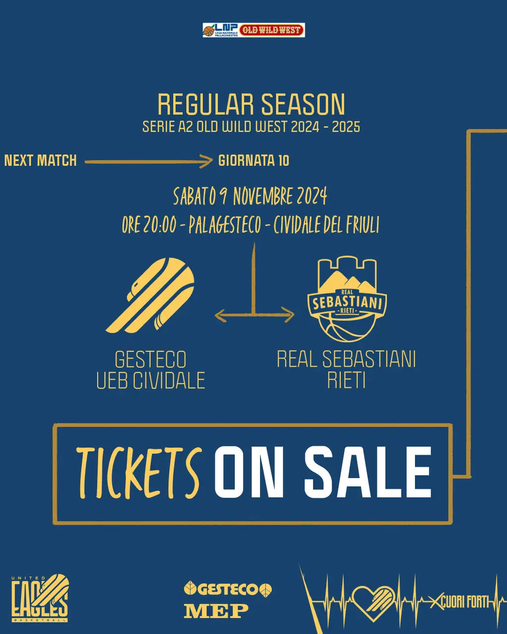 Si apre ufficialmente la prevendita per la decima giornata di Serie A2 Old Wild West 2024/25, che si disputerà sabato 9 novembre al PalaGesteco (palla a due alle 20.00) contro la Real Sebastiani Rieti.