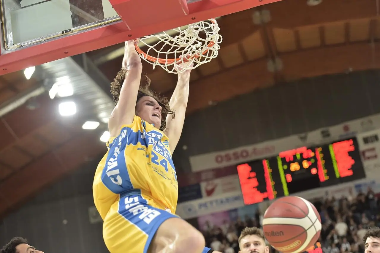 Apu Old Wild West Udine: Mirza Alibegovic 21 (1/5, 6/9), Matteo Da ros 14 (1/4, 4/4), Xavier Johnson 12 (3/7, 2/5), Anthony Hickey 7 (3/8, 0/2), Francesco Stefanelli 7 (2/4, 1/4), Lorenzo Caroti 6 (1/3, 1/2), Iris Ikangi 4 (1/1, 0/0), Giovanni Pini 2 (1/1, 0/0), Davide Bruttini 0 (0/3, 0/0), Lorenzo Ambrosin 0 (0/0, 0/0). Allenatore Adriano Vertemati. Assistenti: Giorgio Gerosa e Lorenzo Pomes.