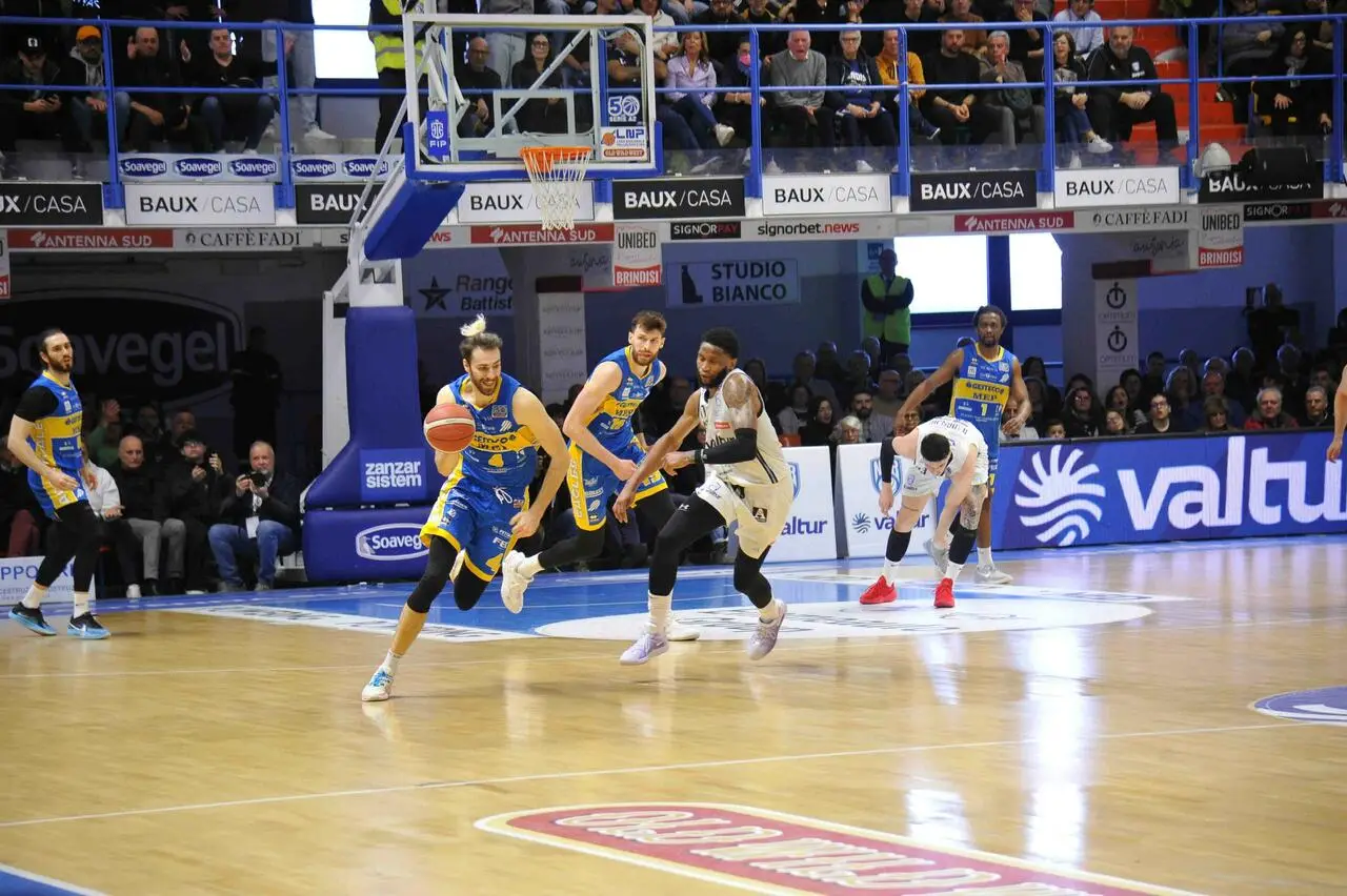 Una vittoria fondamentale per la UEB Gesteco Cividale (71-79) sul campo del PalaPentassuglia di Brindisi in un atipico lunch match che vede schierate due squadre provenienti da percorsi molto diversi e di fronte a 30 tifosi cividalesi, di cui 3 giunti in Puglia in sella alle loro biciclette. I padroni di casa arrivavano da tre successi consecutivi culminati con la vittoria su una Cantù fresca di Coppa Italia (84-79), mentre la formazione ducale aveva bisogno di riscattarsi dopo le quattro sconfitte nelle ultime cinque partite. Il miglior giocatore della gara è Lucio Redivo, autore di una prestazione da 16 punti (3/8 da due, 3/9 da tre, 1/1 ai liberi), 7 rimbalzi, 5 assist e 3 palle recuperate in 23 minuti di utilizzo. Le Eagles torneranno in campo domenica 6 aprile al PalaDozza di Bologna per il match contro la Fortitudo (palla a due alle 18.00).