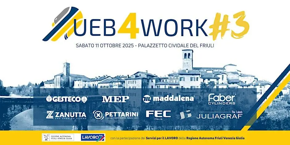 Sabato 11 ottobre è una data da segnare con il “circoletto rosso” per tutti coloro che sono alla ricerca di opportunità di lavoro, sia che si tratti di primi ingressi che del desiderio di crescita professionale: al PalaGesteco di Cividale, infatti, ritorna l'appuntamento dedicato al recruiting promosso dalla UEB in collaborazione con otto aziende-partner e leader nei loro rispettivi settori di attività quali Gesteco, MEP, Maddalena, Faber, Zanutta, Viteria Pettarini, FEC e Juliagraf.