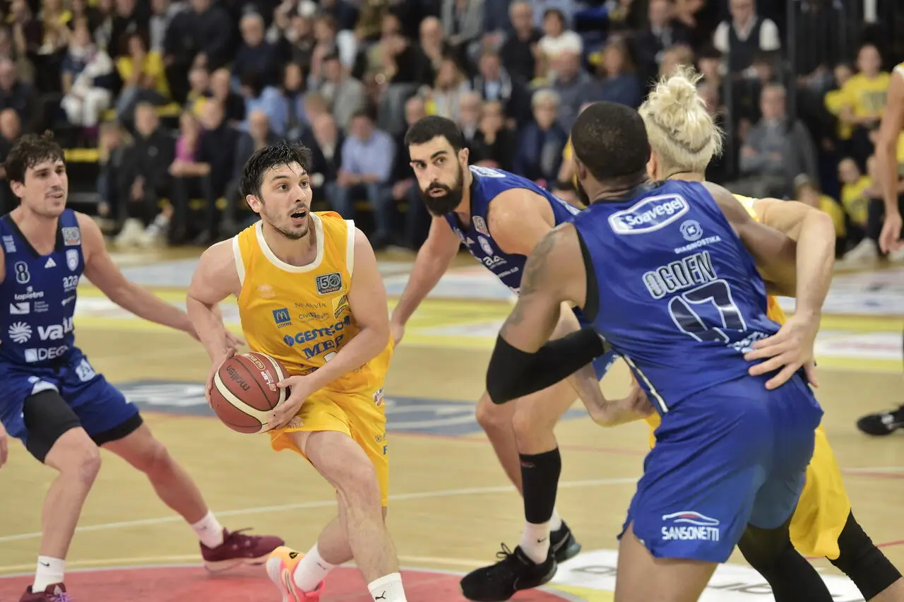 L'ultima frazione è la prevedibile battaglia con le due squadre che mettono in campo grande intensità su ogni pallone e tanti errori su entrambi i fronti e il tabellone dice 56-56 dopo una tripla di Rota a 5'50"; una tripla di Mastellari che capitalizza l'ennesimo assist di Redivo dà il 66-63 a 3'53" che preannuncia un altro finale al cardiopalmo in via Perusini, anche perché Redivo trova la prima tripla della sua partita per il 69-63 dopo che la difesa a tutto campo dei ducali aveva costretto gli ospiti a perdere palla sulla loro rimessa in gioco. Il tabellone dice 70-65 a 1'39" dall'ultima sirena e Pillastrini chiama i suoi per un minuto di sospensione per gestire un possesso che può risultare decisivo nell'economia del match e l'asso di Bahia Blanca non tradisce in penetrazione guadagnando il +7; due liberi di Allen ed un fallo in attacco fischiato a Dell'Agnello a 1'02" rimettono tutto in discussione prima che Arletti venga beffato dal ferro in entrata solitaria e Redivo infili poi i liberi che mettono in ghiaccio la partita, nonostante l'ultimo, nervoso assalto degli ospiti che "costano" un fallo antisportivo a Ogden e i liberi di Dell'Agnello per il 79-70 con cui tutti vanno sotto la doccia.