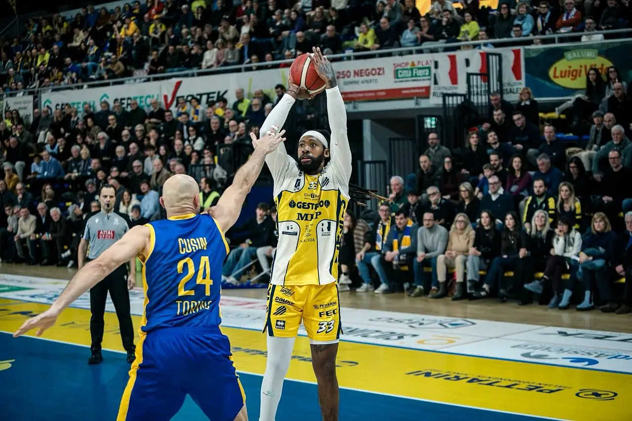 I ducali centrano entrambe gli obiettivi ribaltando la gara nella seconda parte, dopo aver chiuso sotto di dieci punti all'intervallo, infliggendo agli ospiti un parziale di 42-22 con Lucio Redivo decisivo a sigillare il match nelle battute finali e Deshawn Freeman dominante su entrambe i lati del campo.