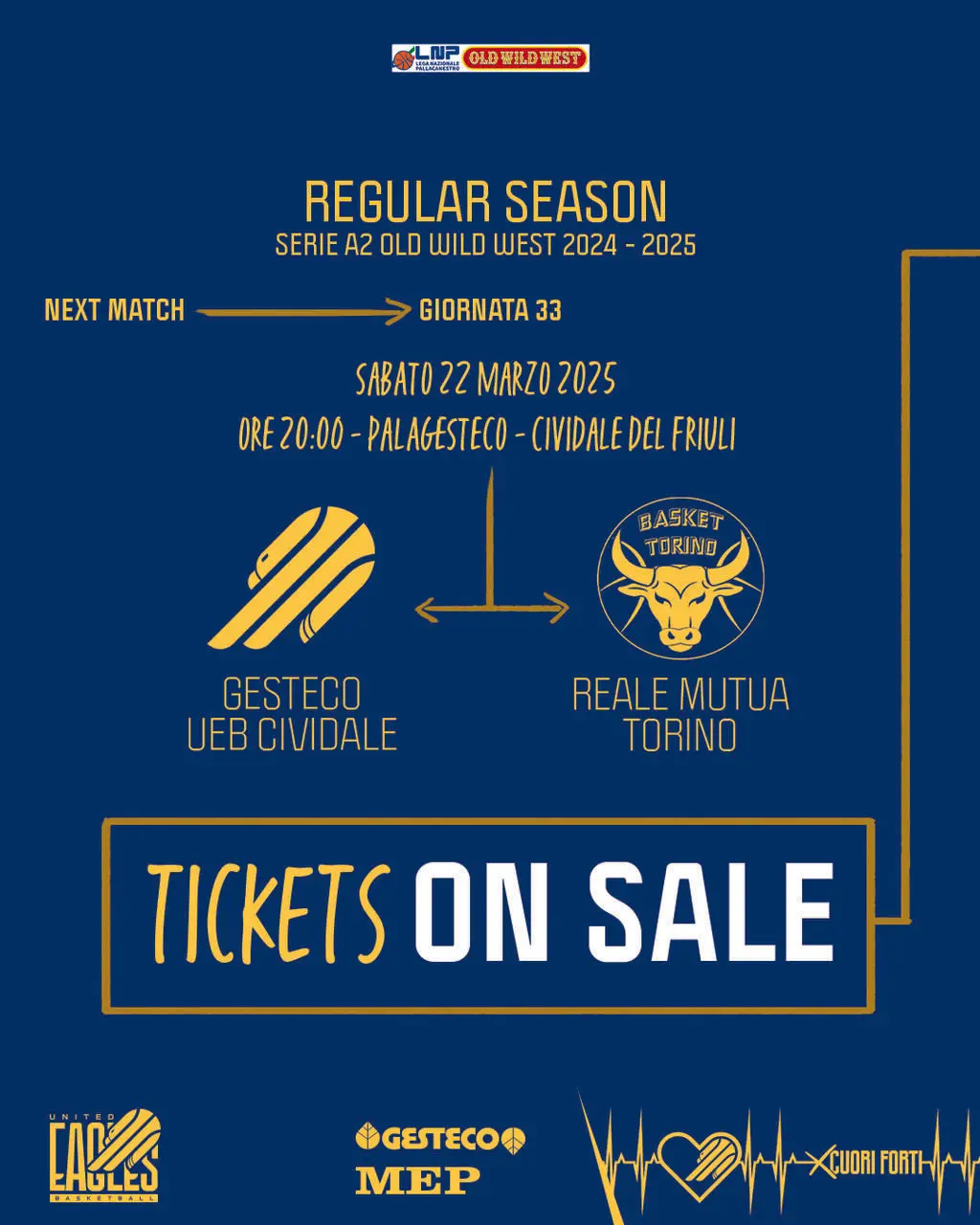 È aperta la prevendita per la trentaquattresima giornata di Serie A2 Old Wild West 2024/25 (la quindicesima del girone di ritorno), che si disputerà sabato 22 marzo al PalaGesteco contro la Reale Mutua Torino, con palla a due alle 20.00.